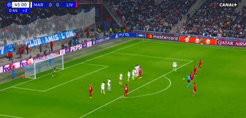 直到半场伤停补时阶段,索博斯洛伊任意球直接破门,此球极像当年罗纳尔迪尼奥破门的经典时刻,同样也是门将准备不足,利物浦1-0打破僵局。
