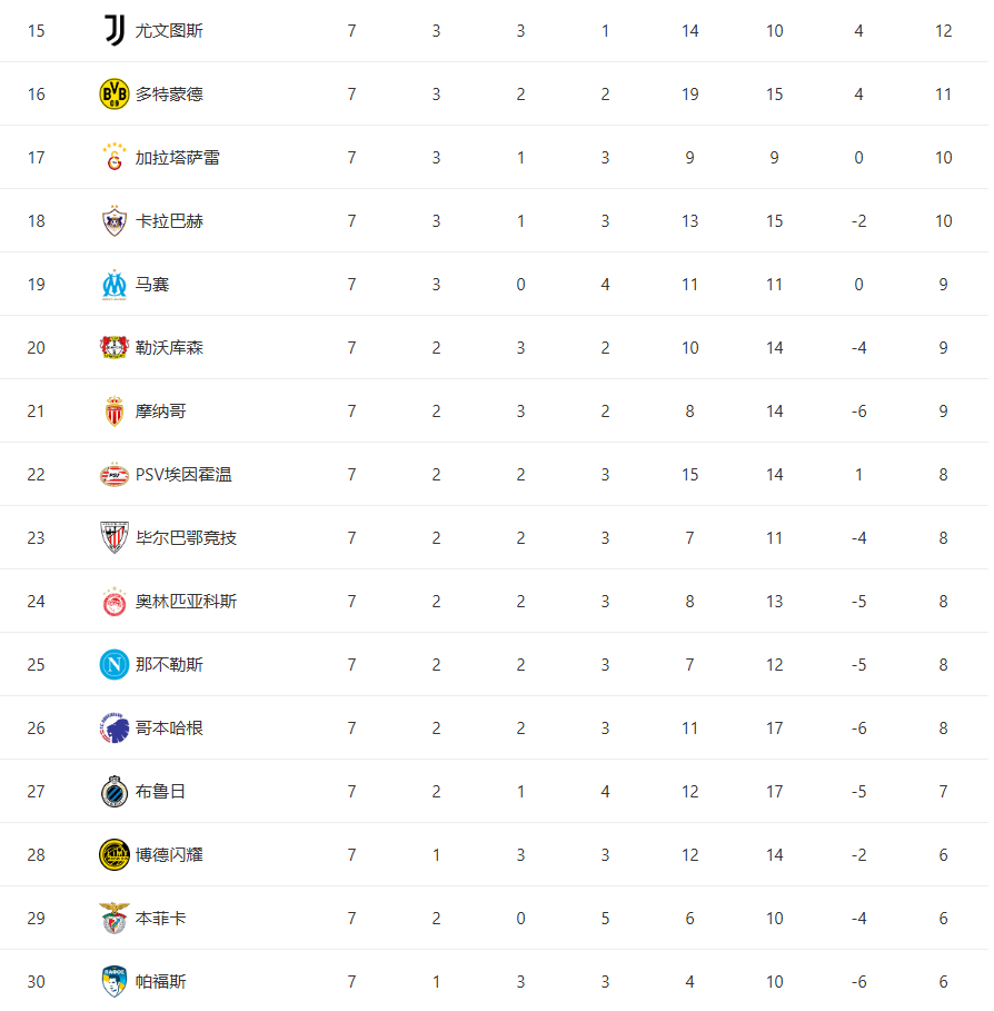 其他比赛分别是:纽卡斯尔联3-0埃因霍温、卡拉巴赫3-2法兰克福、亚特兰大2-3毕尔巴鄂竞技、加拉塔萨雷1-1马德里竞技和尤文图斯2-0本菲卡,这样一来,穆里纪奥的球队仅积6分,在只剩最后一轮的情况下,基本无缘附加赛,将前提告别本赛季的欧冠,看来本赛季又是四大皆空了!